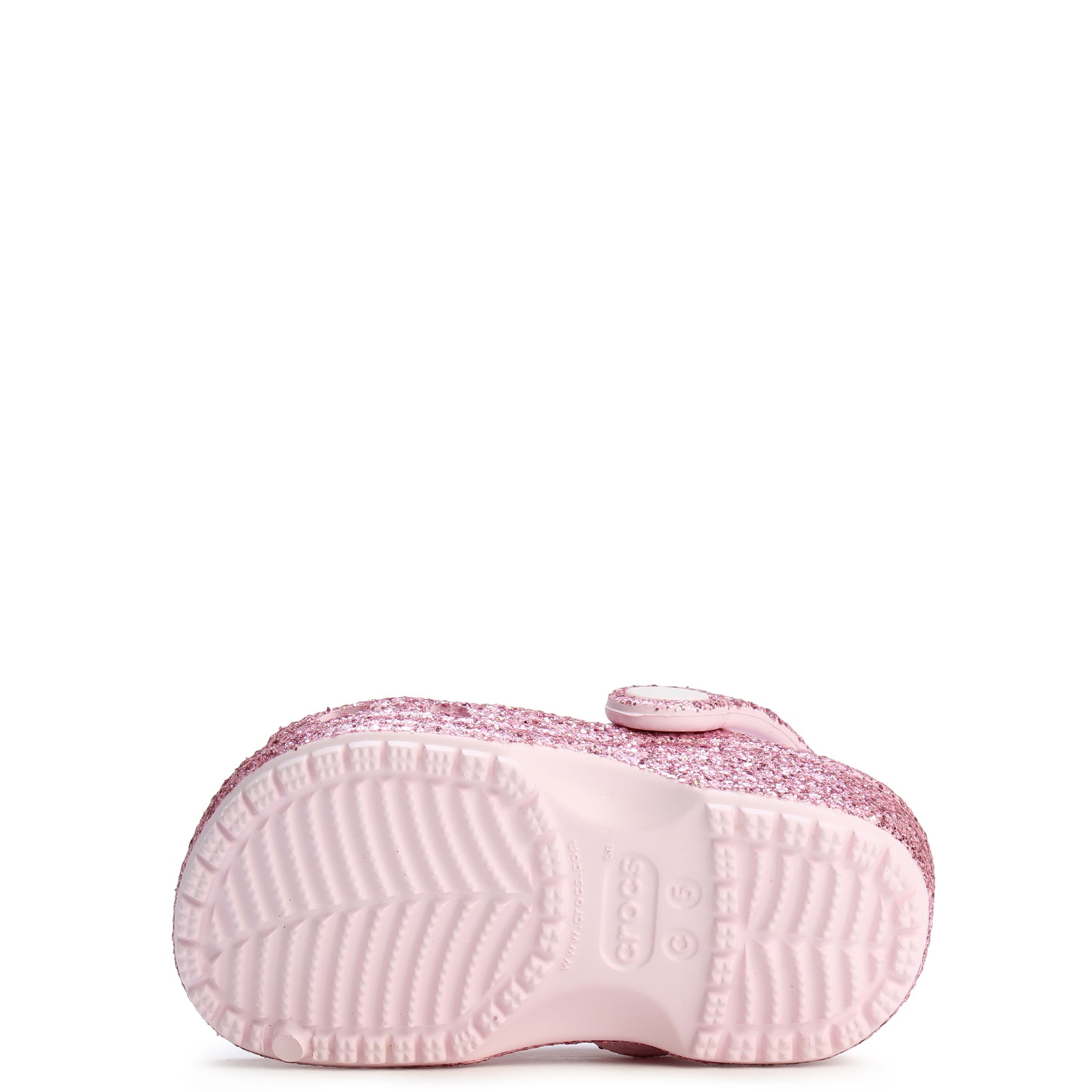 Add some sparkle to their playtime with the new Crocs Classic Chunky Glitter Clog for kids! This shimmery Classic Clog features fully molded and easy to clean Crocs Croslite™ foam construction, allover chunky glitter, vented forefoot for breathability and easy drainage of water and debris, heel strap for a secure fit, and lightweight, non-slip outsole for flexible traction.