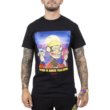 From the official Diamond Supply Co. x Ape collab comes the soft, midweight cotton 3 Some Ape Tee. Screen-printed on the torso of this Diamond t-shirt is a graphic of three apes against a sunset, with script below reading, "Rather be bored than boring."