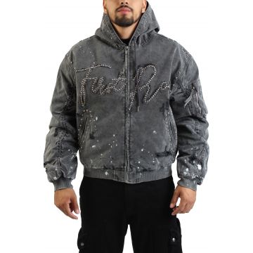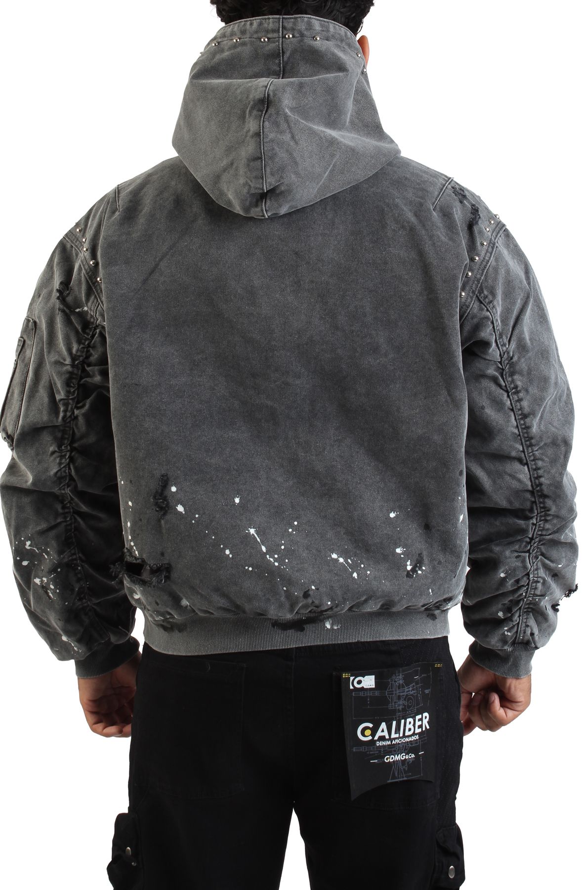 Yo, ready to refresh your rotation with serious street cred? The FIRST ROW Stud Logo Hood Zip-Up Jacket is the **men's washed black zip-up hoodie** that’s about to become your essential statement piece.