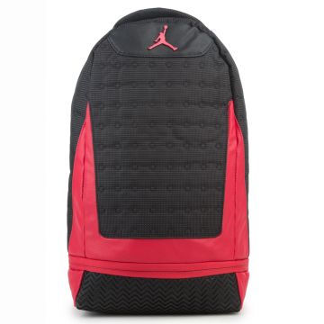 Match your pair of Jordan sneakers with a fresh Retro 13 backpack. The backpack features red accents and Jumpman graphics. For a complete look, style it best with a Jordan tee and joggers. • One large main compartment • Shoulder straps • Molded rubber sneaker bottom • 20” x 11.5” x 7” • Spot clean • 100% polyester