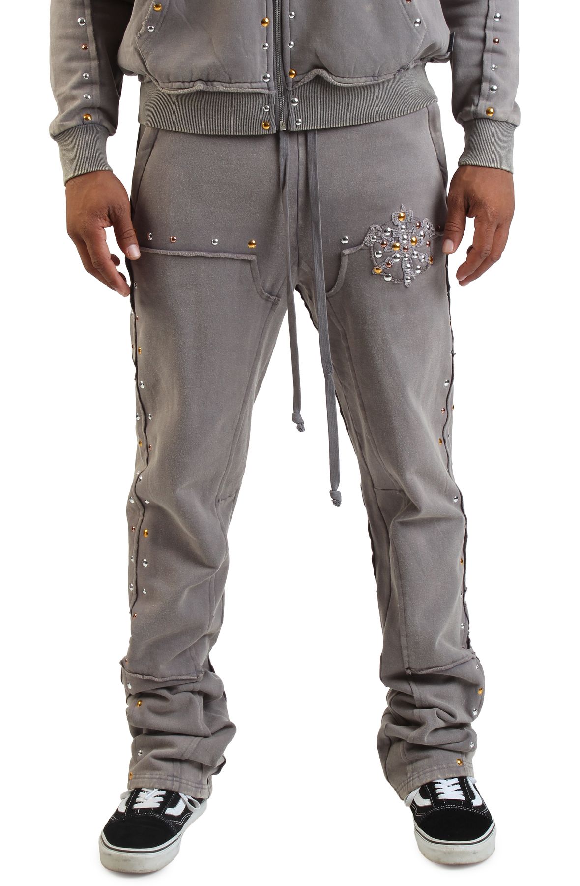 Ditch the basic. The **Studded Fleece Flare Joggers** redefine comfort, blending plush style with undeniable street cred.