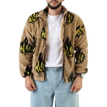 Just in time to bring that heat to your closet this HUF Flamin' Zip Sherpa Fleece Jacket features yellow flame designs all around. Thick, cozy and warm sherpa material perfect for this fall season.