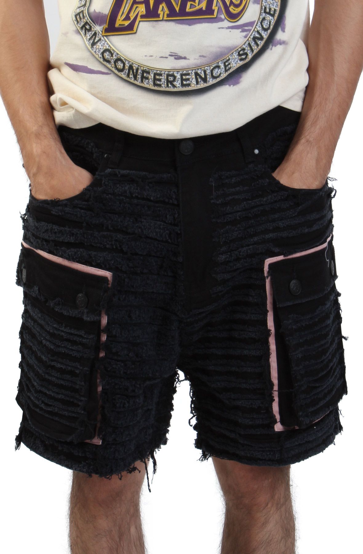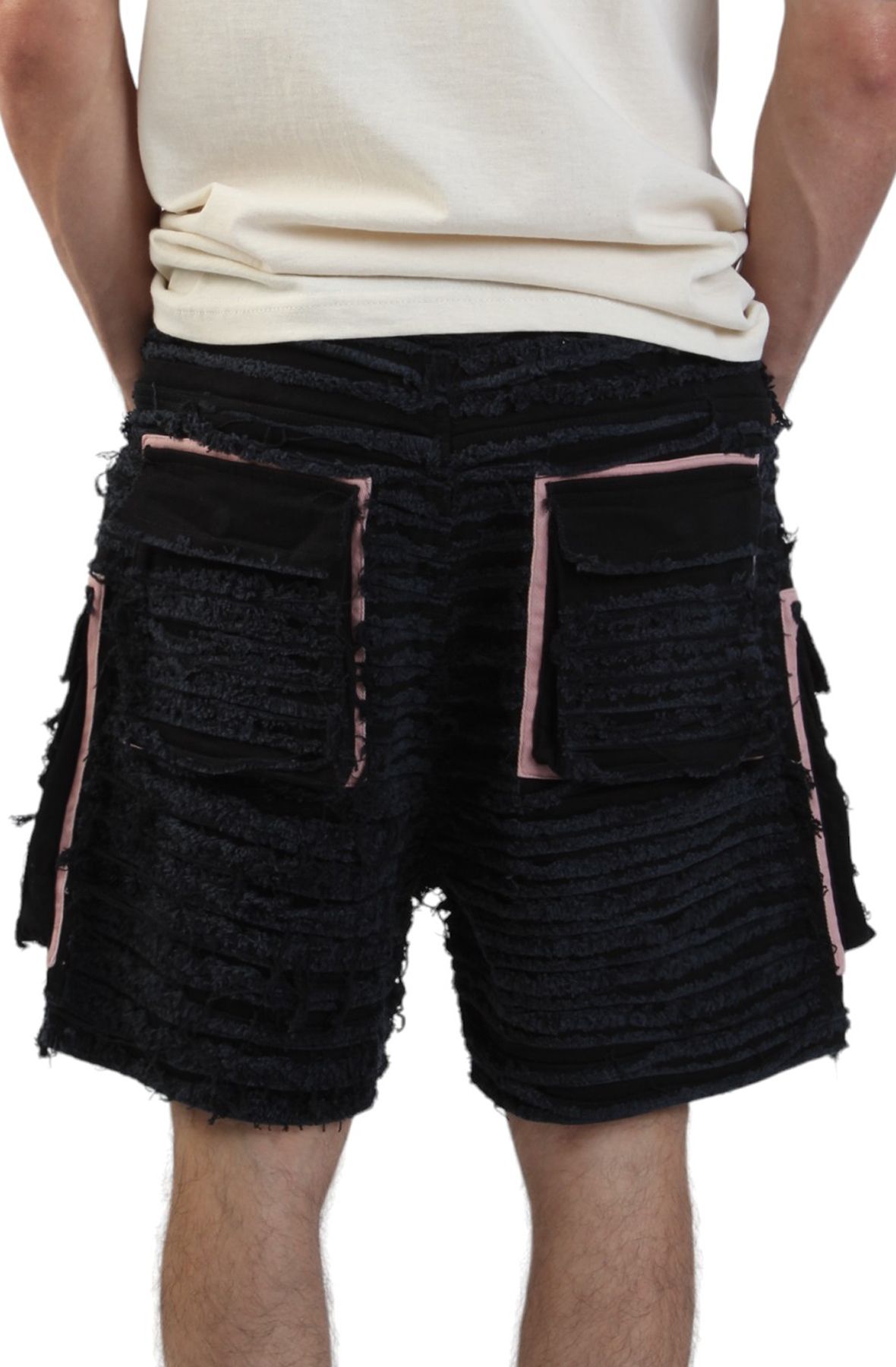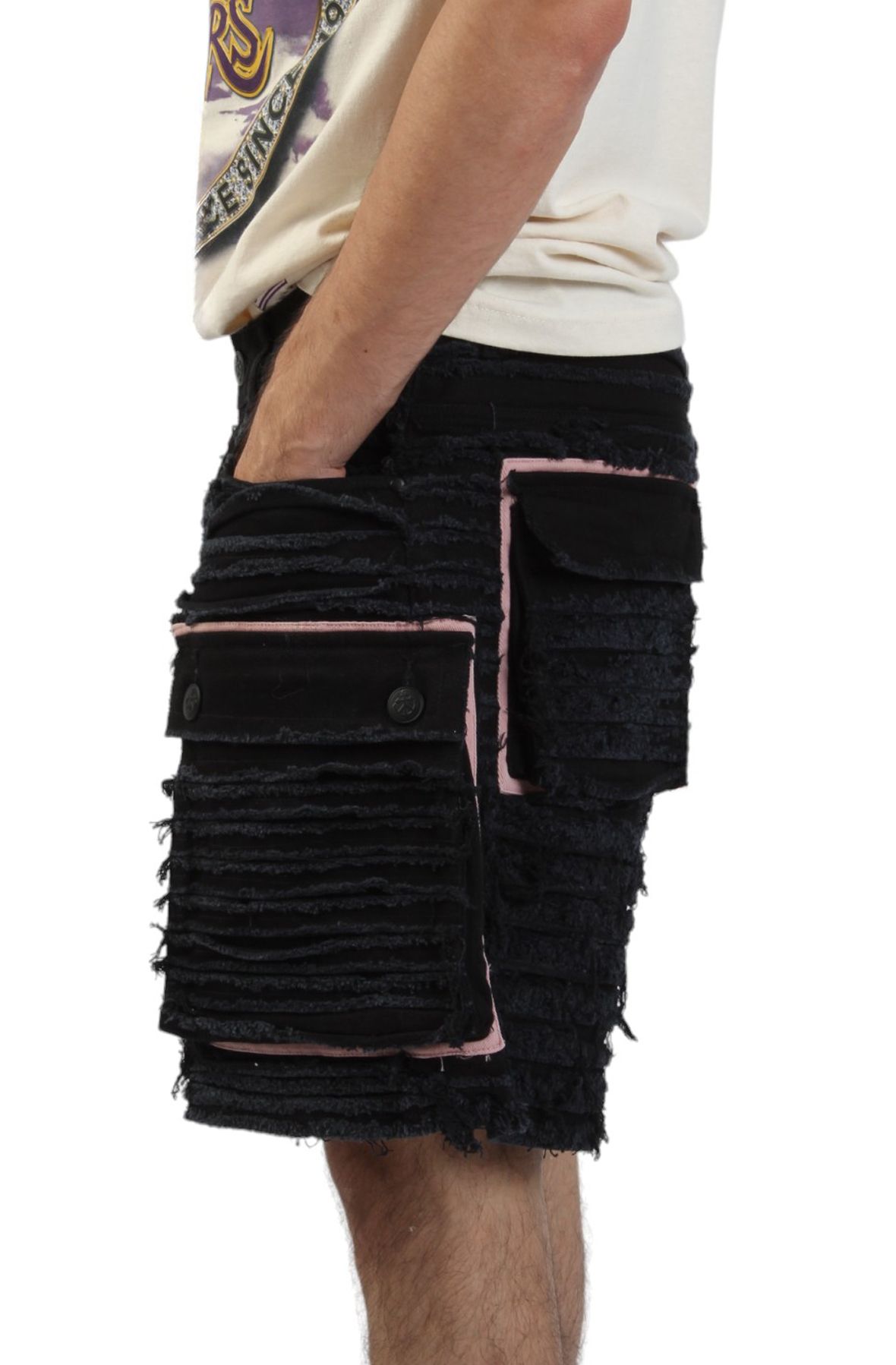 Add a rugged style to all your summer outfits with men's Shredded Denim Cargo Shorts. Combining edgy style with functional design, these shorts are the ultimate statement piece of the season.