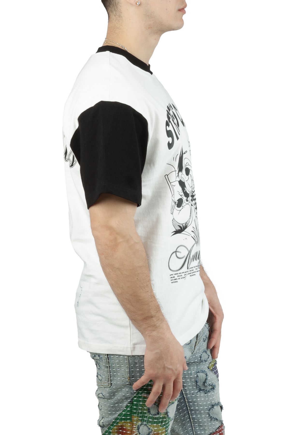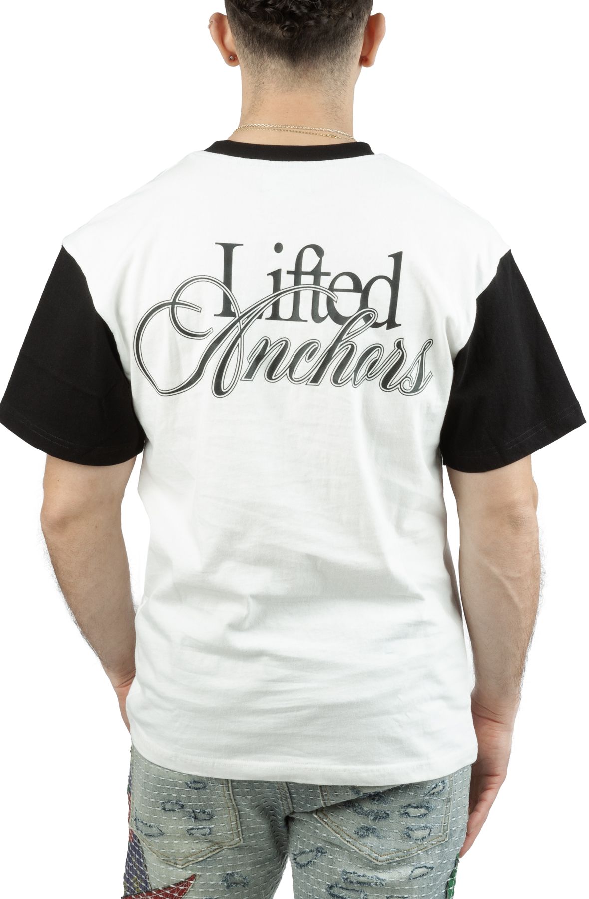 Elevate your casual style with the Stress Club Ringer Tee from Lifted Anchors. This trendy black and white graphic tee is perfect for urban shoppers looking to make a statement while staying comfortable.