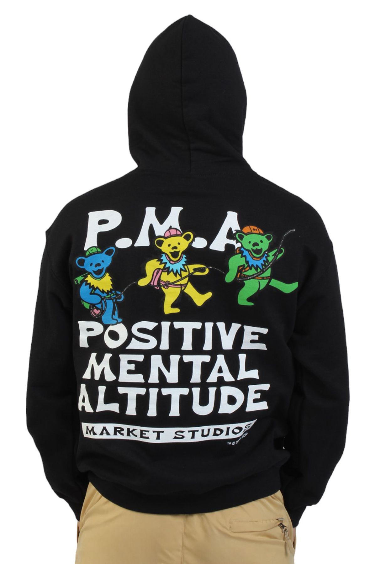 Immerse yourself in the timeless spirit of the iconic Grateful Dead with our PMA Hoodie. Made with attention to detail with bold and unique graphics and colors screen-printed on both the front and back of the hoodie. The hoodie is a pullover hoodie style featuring an adjustable drawstring hoodie and a kangaroo pocket pouch pocket on the front.