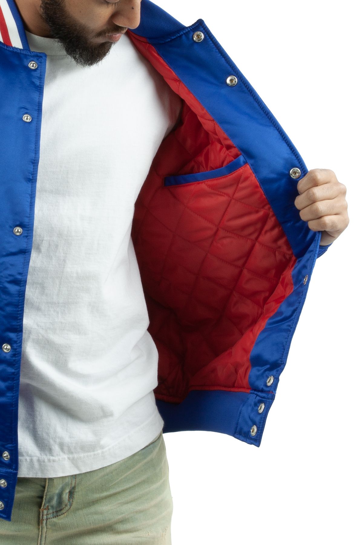 The Mitchell & Ness Men's NBA Philadelphia 76ers Champ City Satin Jacket features soft and lightweight satin material. The lightweight material gives you an all day comfort and versatility.
