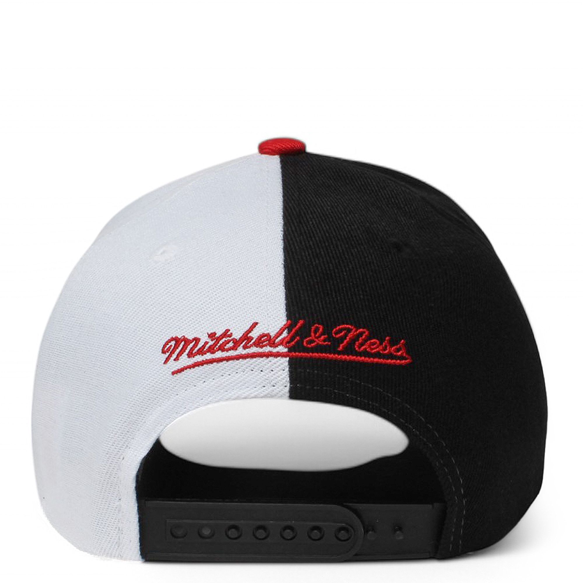Elevate your street style with the Mitchell & Ness Chicago Bulls NBA 2 Tone Snapback hat. This eye-catching cap features a bold black crown, vibrant red Bulls logo, and a striking white side panel that makes it a must-have accessory for any urban wardrobe.