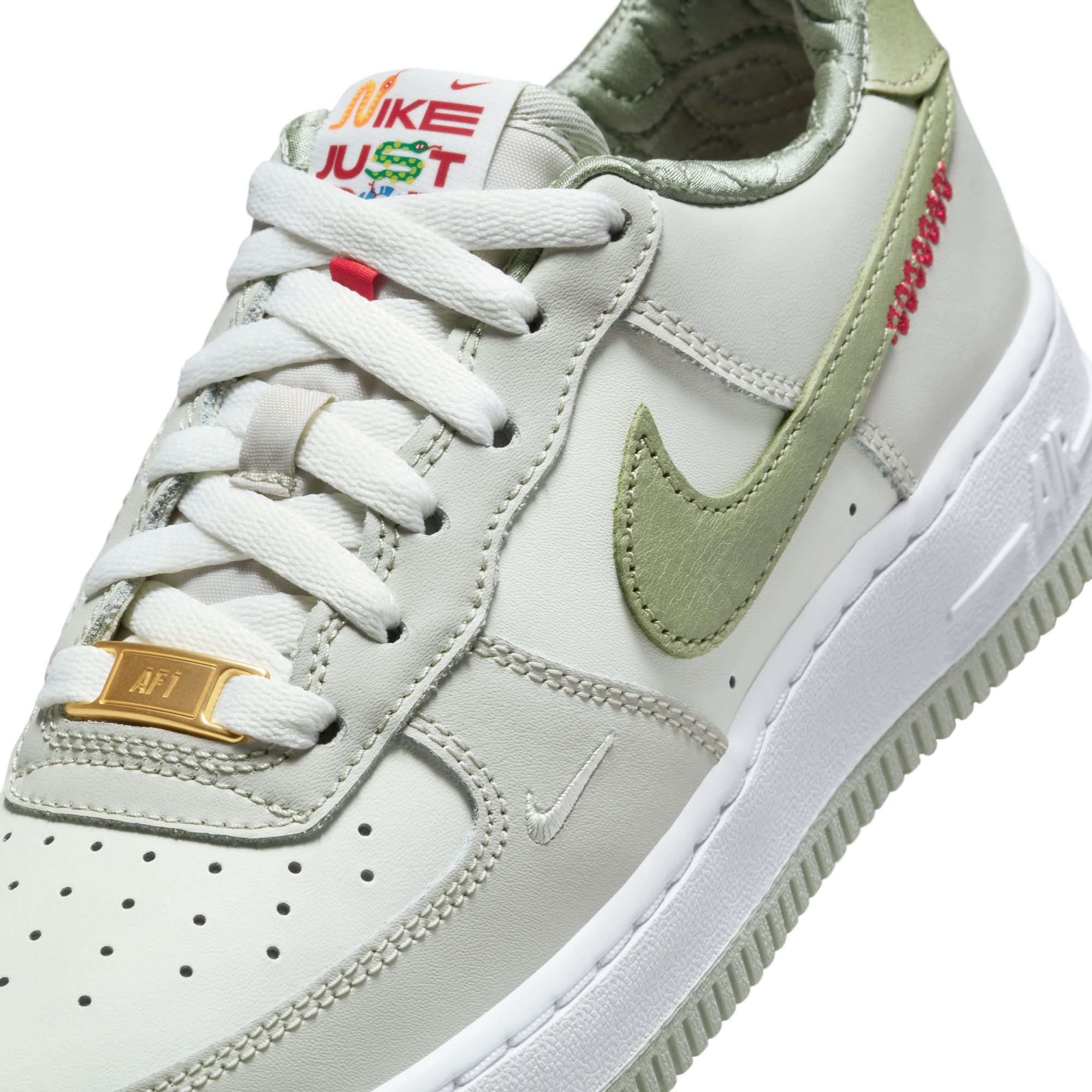 Meet a classic you can count on. Durable construction, comfortable Nike Air cushioning and grippy outsoles make the AF1 an everyday favorite. This edition celebrates the Lunar New Year with design details that mimic the snake's coiled shape.