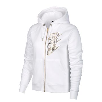 The women's Sportswear Shine Metallic Logo Zip-Up Hoodie is perfect for casual wear.