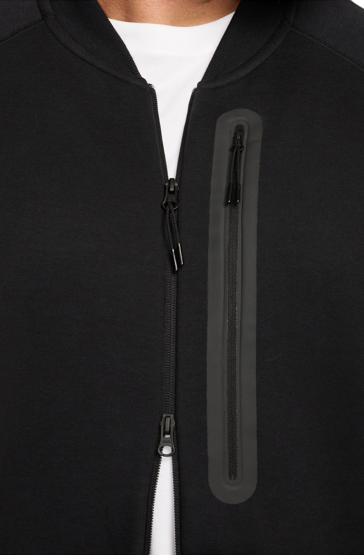 Vertical zippered chest pocket features the taped surround for secure storage and that signature Tech Fleece DNA.