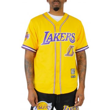 Show your team spirit with this Pro standard Lakers Baseball Jersey .The Los Angeles Lakers Baseball Jersey features a classic jersey loose fit, short sleeve style with screen-printed Los Angeles Lakers logo on the front chest and back.