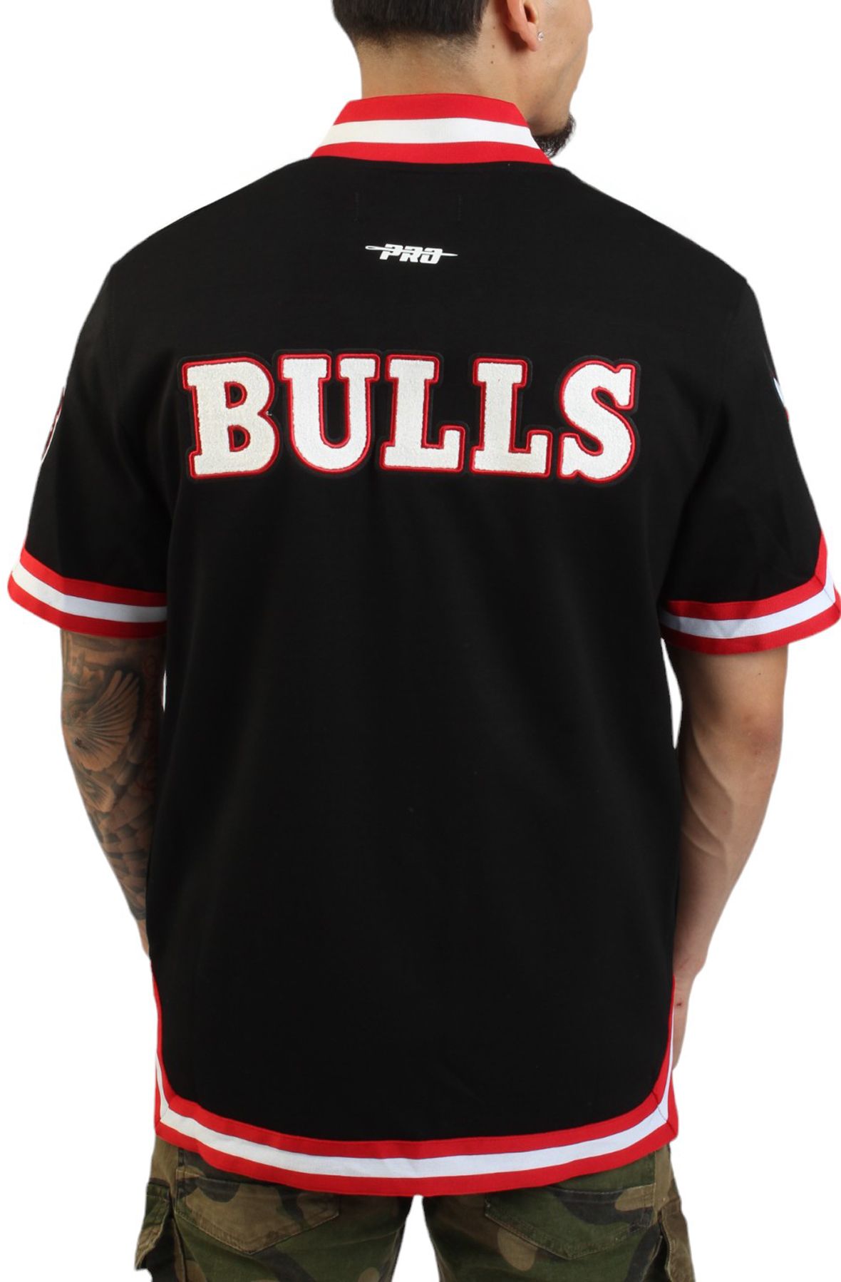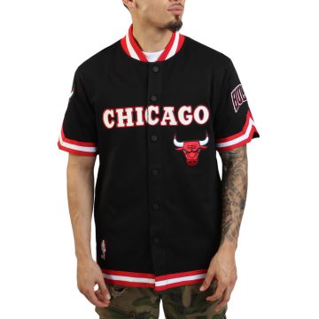The jersey features a classic baseball warm-up style, with a snap button-down front closure. The Chicago Bulls team logo is prominently displayed on the front chest. Show your love for the team with this iconic Chicago Bulls Warm-up Jersey and pair it up with your favorite pair of jeans.