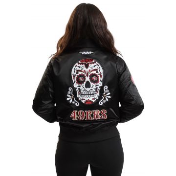 NFL SAN FRANCISCO 49ERS SUGAR SKULL SATIN JACKET NFL SAN FRANCISCO 49ERS SUGAR SKULL SATIN JACKET FS4U410888 Women – Black