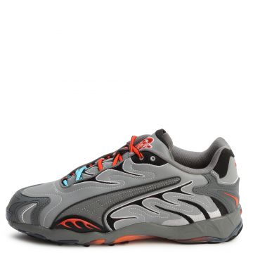 Step up your sneaker game with the PUMA x A$AP Rocky Inhale Reflective sneakers, where streetwear meets motorsport flair. Featuring a striking grey base accentuated by flame-like streaks of blue and yellow, these kicks are designed to make a bold statement.