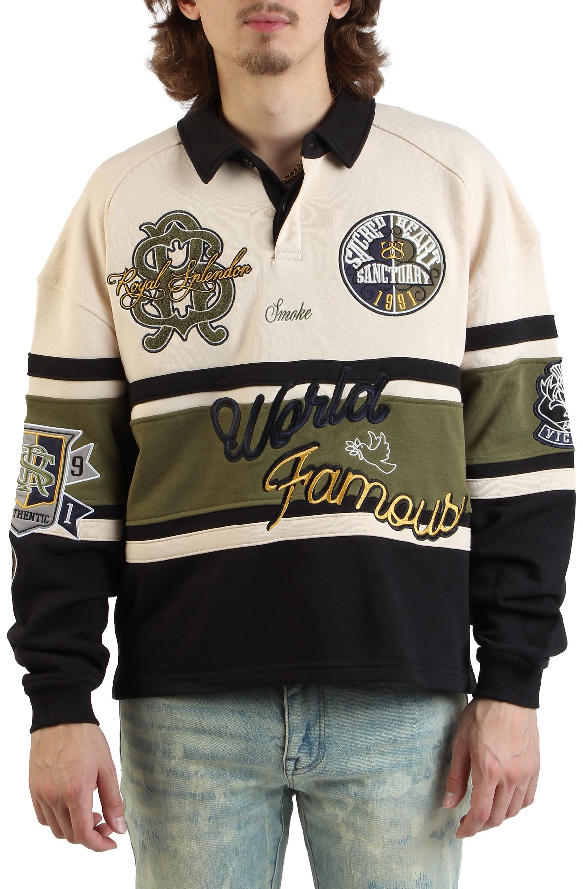 Level up your rotation. The SMOKE RISE Ivy Rugby Long Sleeve T-Shirt in Black/Olive is here. This **Men's Urban Rugby Shirt** is your next essential flex.